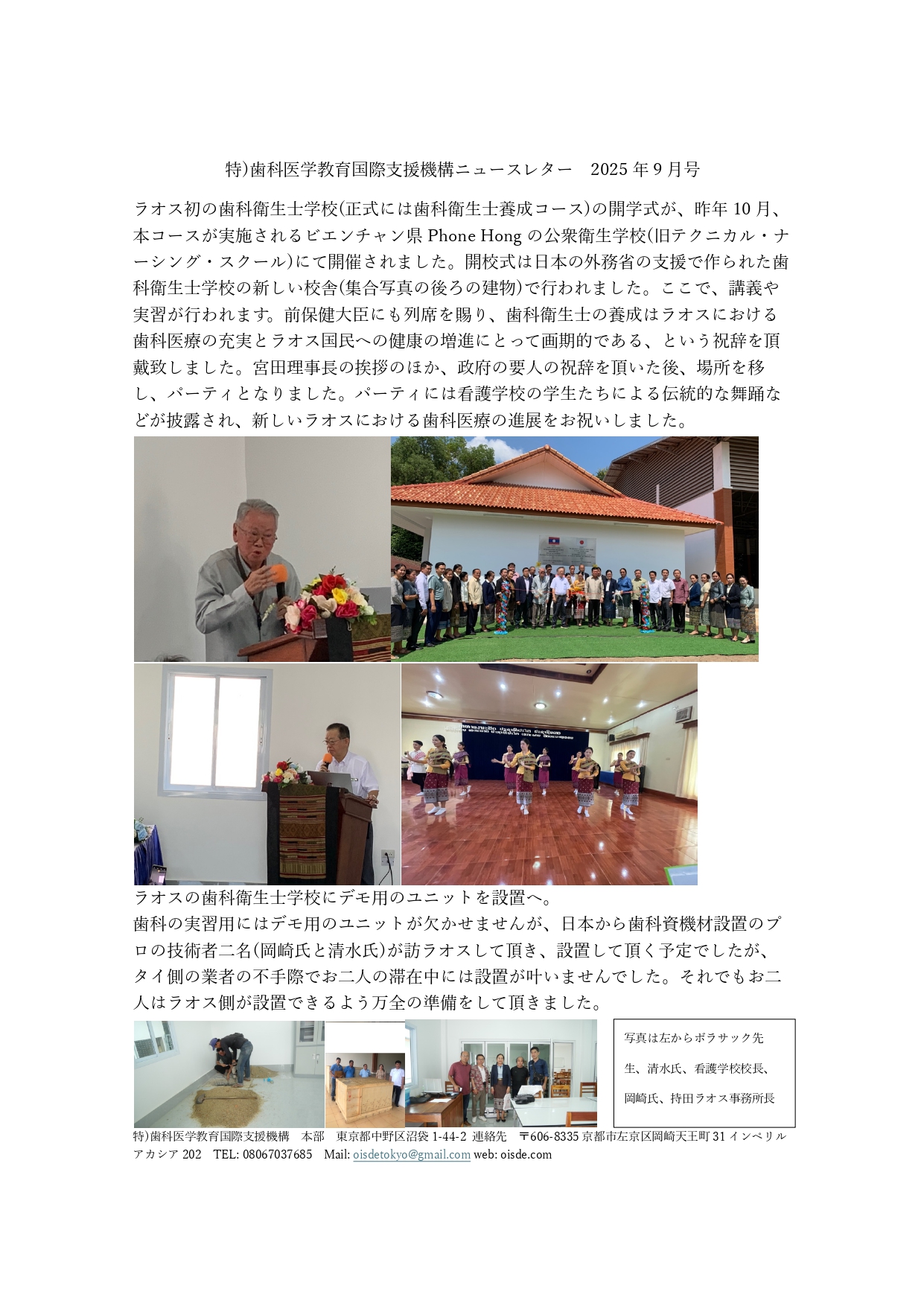 ラオスにOISDEと日本国外務省の支援で歯科衛生士学校が開校した記事が日本歯科新聞に載りました