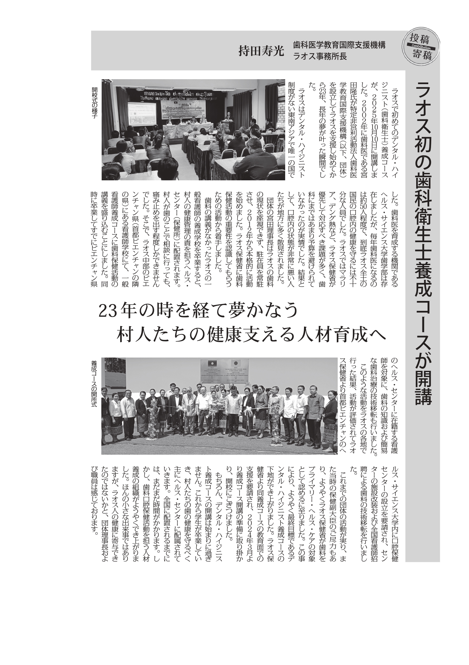 ラオスにOISDEと日本国外務省の支援で歯科衛生士学校が開校した記事が日本歯科新聞に載りました